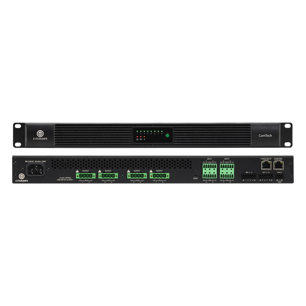 Crown ComTech D Series amplifiers are designed for versatility, flexibility, and ease of installation. With both Dante inputs and outputs, built-in DSP, power sharing, Lo-Z/Hi-Z switching, and a simple to use web configuration interface, ComTech ...