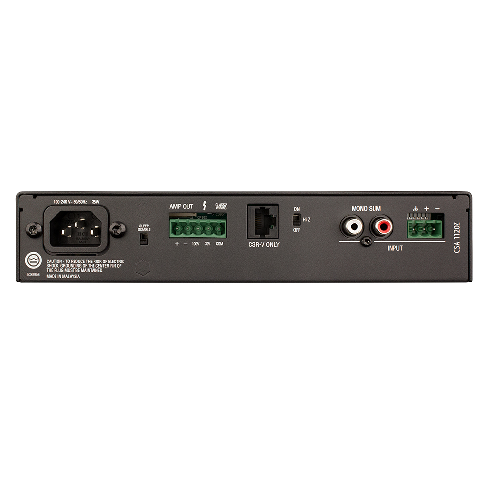 Supporting 70V and 100V installations out of the box, CS amps include RJ45 connectors for use with JBL CSR-V in-wall volume controls. Its universal power supply allows every CS amp to accept AC voltages from 100 to 240 VAC, 50/60 Hz.