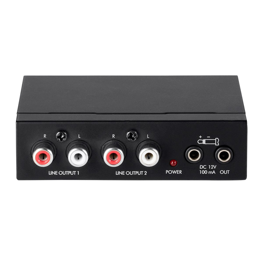 - Converts to stereo RCA audio output for connecting to audio system