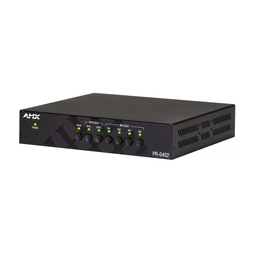 The PR-0808 supports high quality HDMI 2.0, HDCP 2.2, HDR10+, 36-bit per pixel Deep Color, and Dolby Vision. Dynamic audio de-embedding and multiple open control options offer maximum configuration flexibility. Combining a robust matrix switcher and a highly affordable price point, backed by over 30 years of industry-leading matrix switching experience, the AMX Precis PR-0808 can be trusted to deliver an exceptional switching solution.