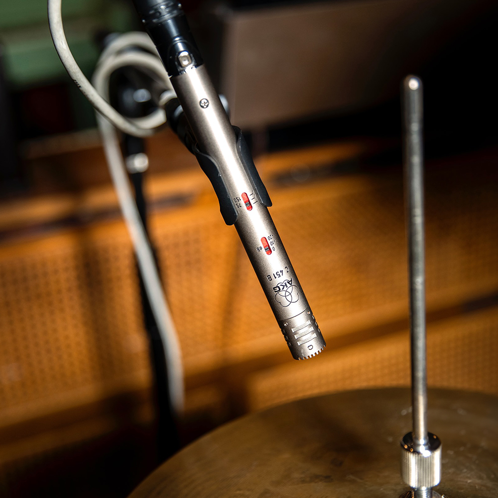 The AKG C451 B is an excellent tool for accurately capturing signals rich in transients such as drums, instruments with a percussive sound, acoustic guitar, or for overhead miking.