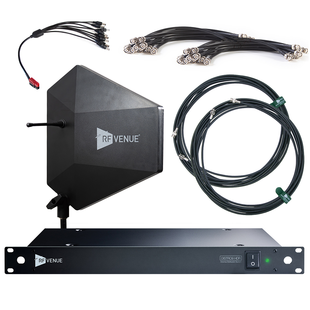 The 9 Channel Wireless Microphone Upgrade Pack with Diversity Fin IPX Antenna is the ultimate turnkey RF solution for professionals who need rock-solid wireless performance in the most demanding environments. This comprehensive bundle combines the rugged, IP-rated weather-resistant Diversity Fin IPX Antenna White with the high-performance DISTRO9 Antenna Distribution System and premium RG8X cabling.