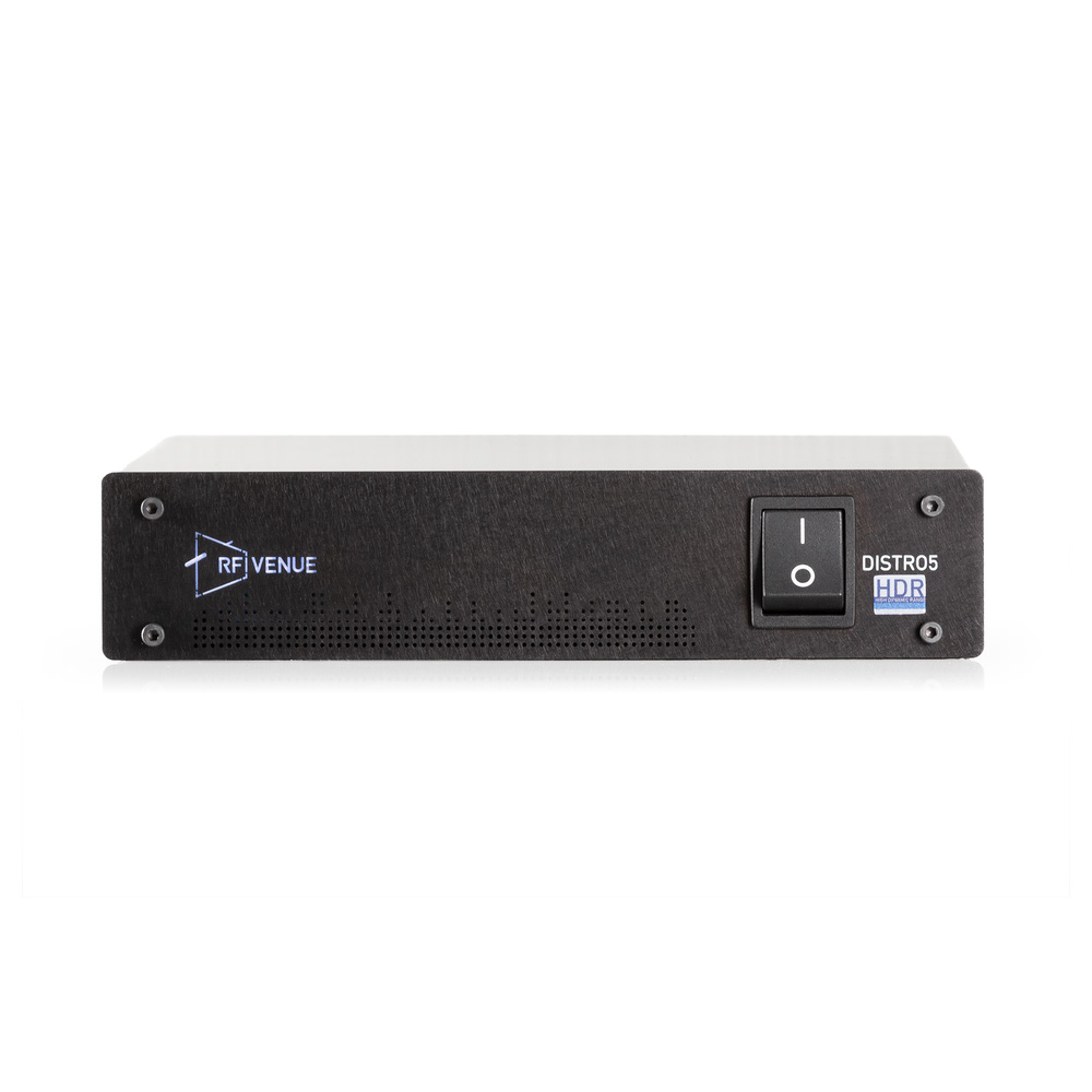 The DISTRO5 HDR is part of RF Venue’s new High Dynamic Range (HDR) Series, delivering reliable, high-performance RF distribution for all wireless microphone systems operating across the 470–698 MHz band. Building on the proven success of the DISTRO4, the DISTRO5 HDR provides enhanced RF performance in a compact half-rack form factor, making it the ideal solution for both fixed and mobile production environments.