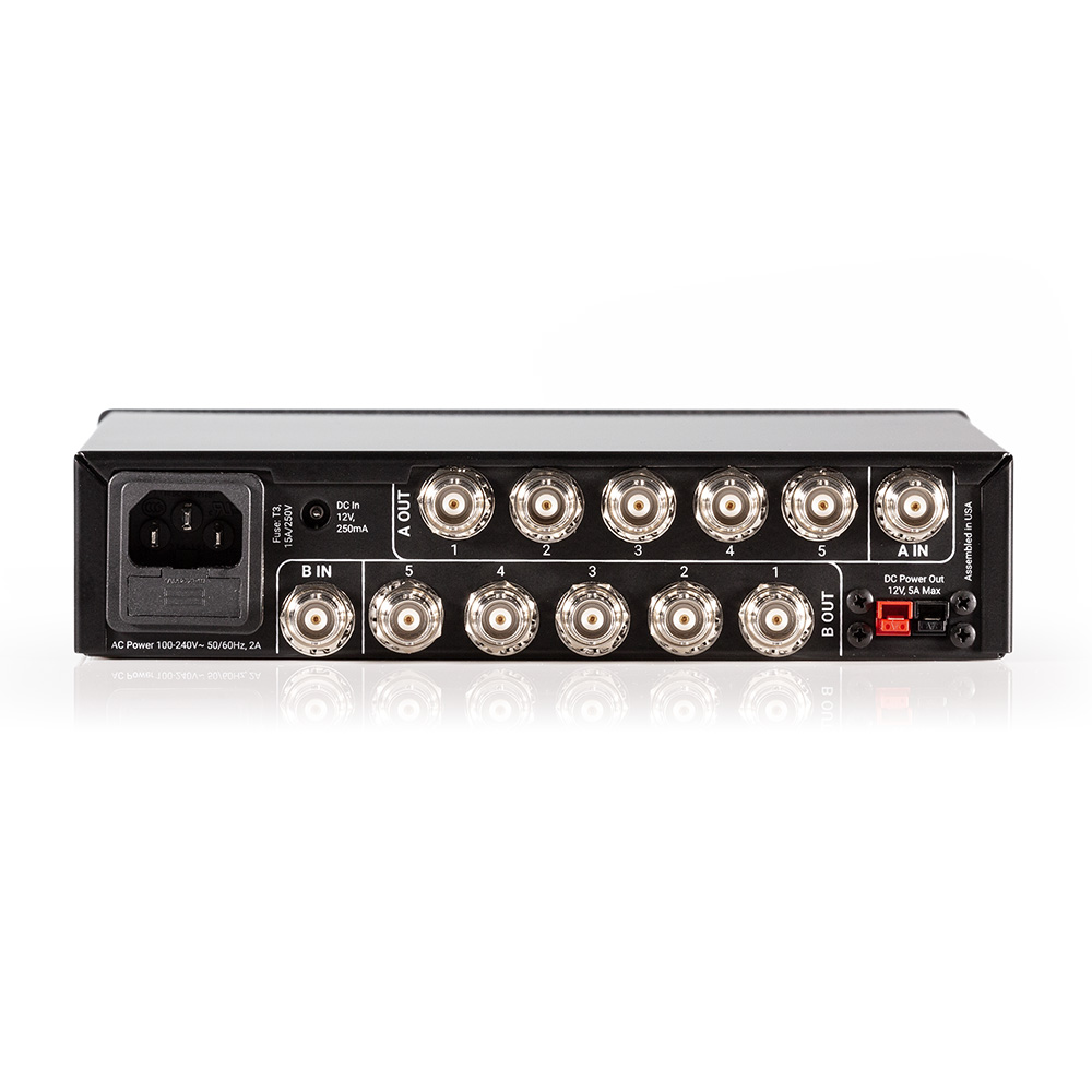 For mobile or location-based applications, the DISTRO5 HDR is battery-ready, supporting DC battery input and delivering a full 5A 12V DC power output for complete flexibility on the go.