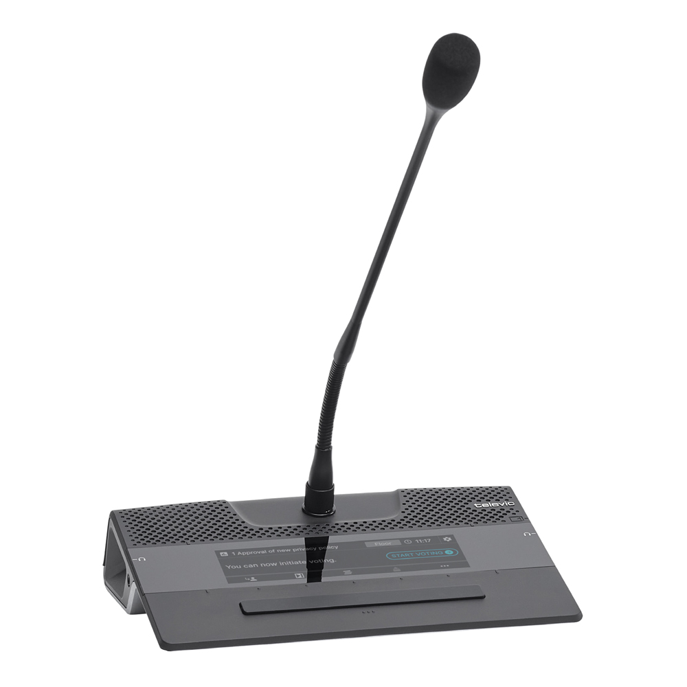 Meeting functions such as voting, authentication, language channels, and role management can be activated or deactivated with a simple tap. A single device can be configured as either a chairperson or delegate unit, reducing hardware complexity and increasing deployment flexibility.
